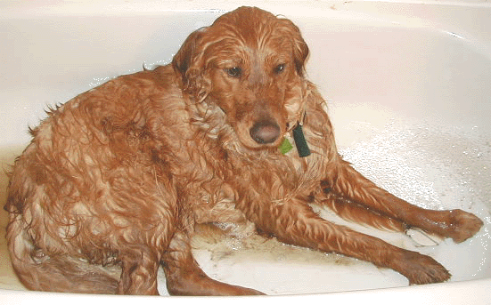 A dog that likes bathtime! |